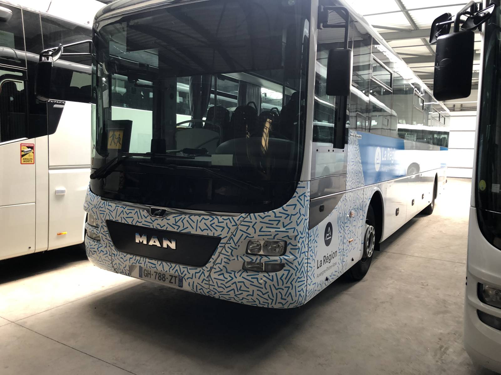 Dans un autre contexte, AM Covering est intervenu dans une entreprise de transport en commun pour poser la décoration de la région Auvergne Rhône-Alpes sur un bus.