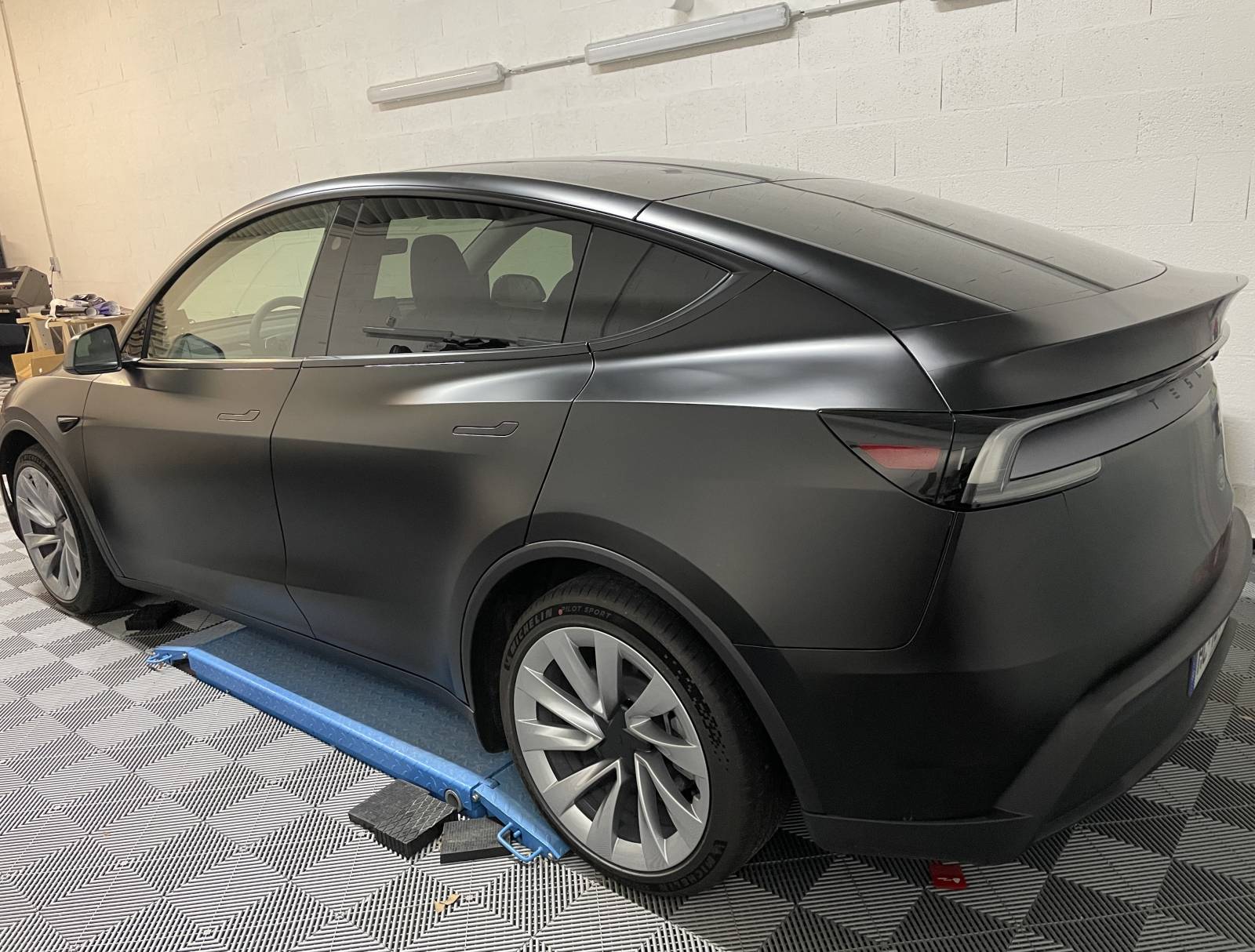 Dans notre atelier à Fleurieu-sur-Saône, à deux pas de Lyon, nous avons récemment eu le plaisir de réaliser une pose de PPF intégral finition satinée sur une Tesla Model Y Juniper. La peinture d'origine noir uni délicate méritait une protection carrosserie haut de gamme.