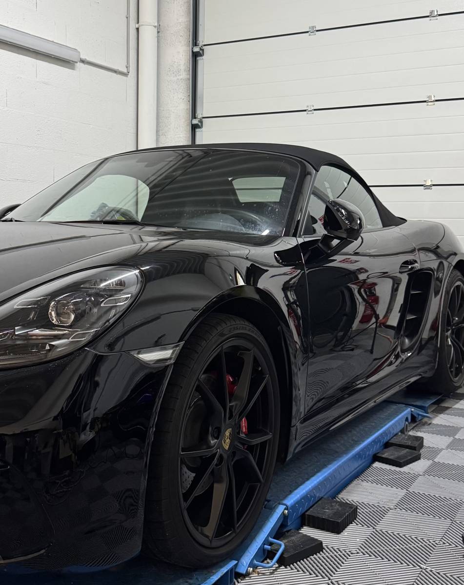 Nous avons récemment réalisé une prestation complète sur une Porsche Boxster 718 noire, combinant correction esthétique, protection durable et personnalisation sur mesure.